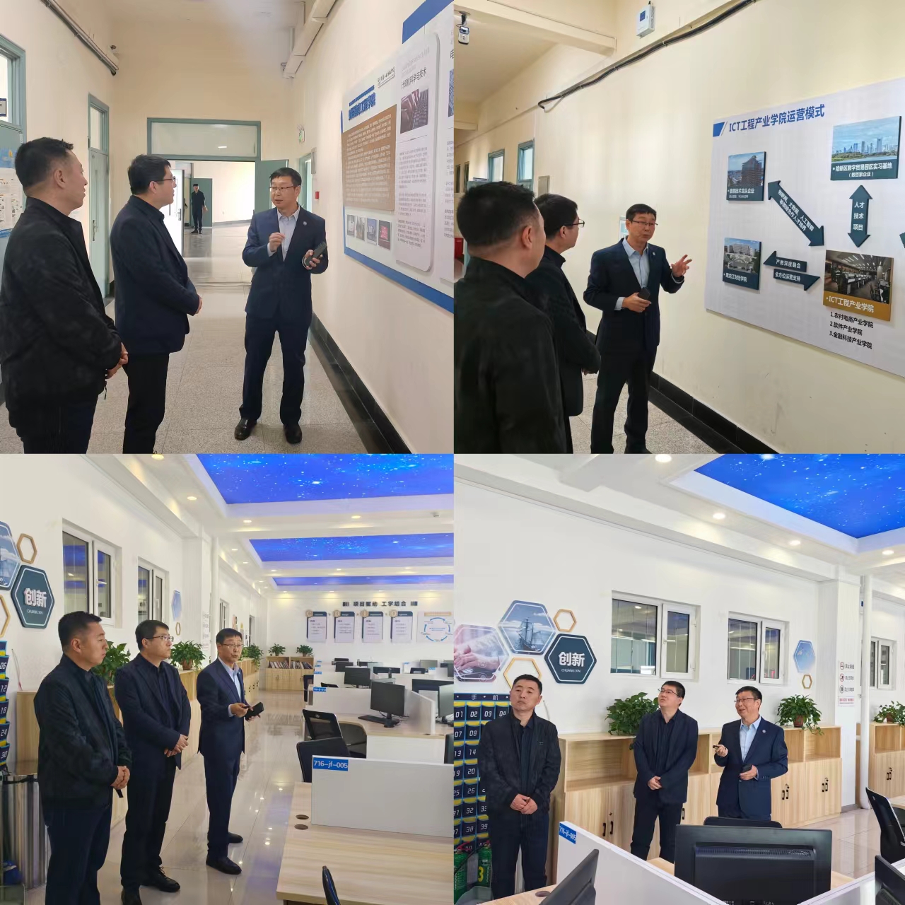 调研组一行首先来到黑龙江财经学院开展走访调研,财经信息工程学院院长葛雷带领调研组对ICT工程产业学院及其下设的农村电商产业学院、软件产业学院和金融科技产业学院进行实地考察,详细介绍了学院的发展历程、专业设置和人才培养模式,重点介绍了ICT工程产业学院的运营模式和取得成效。