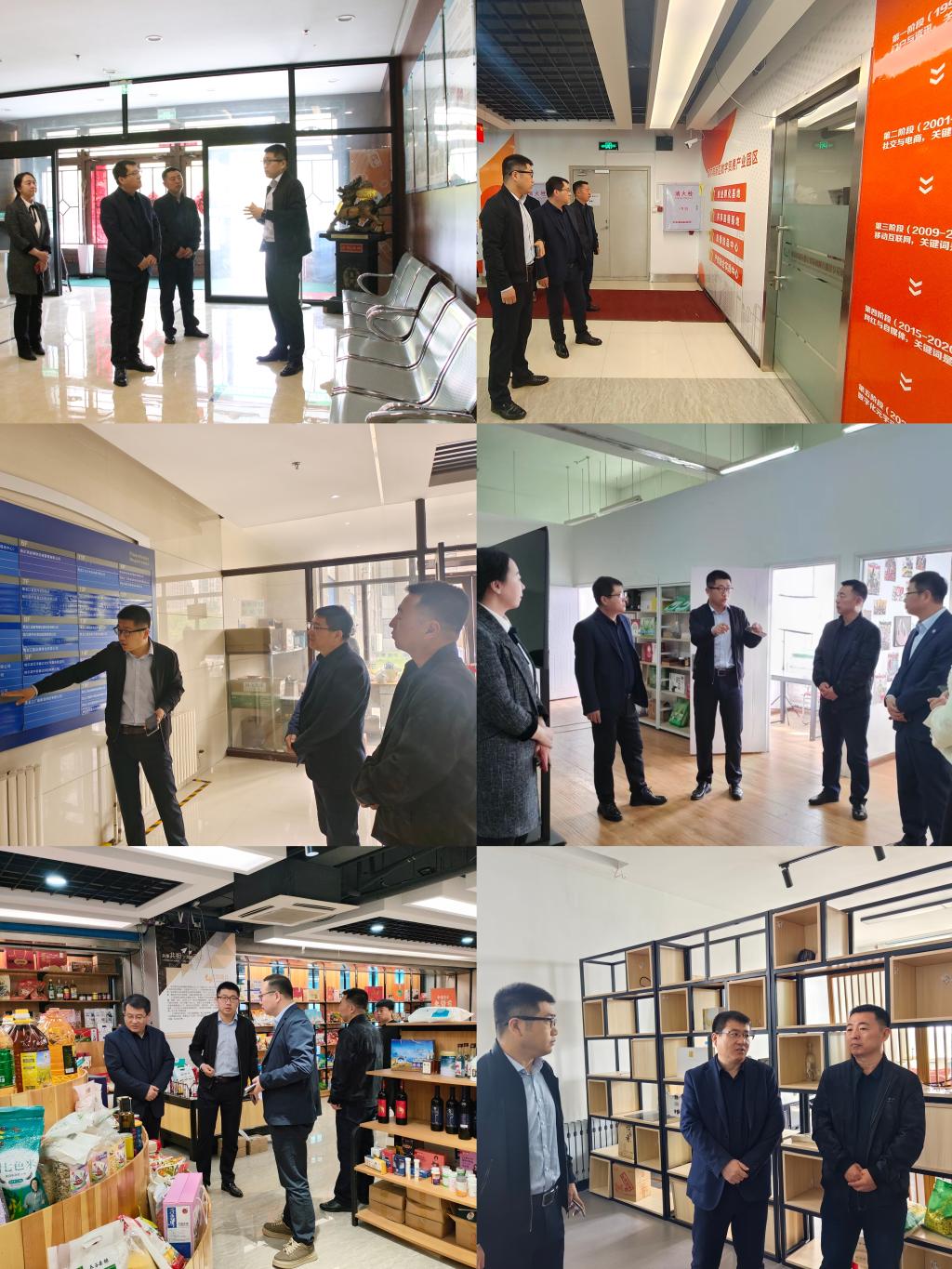 随后,调研组到哈尔滨新区数字贸易产业创新园区开展走访调研。创新园区总经理陈奇首先详细介绍了哈尔滨新区数字贸易产业创新园区总体建设情况,带领调研组先后参观了园区绿色农产品为主的选品大厅、直播间,并介绍了园区促进产教融合的具体思路和举措,为管理学院下一步推进“东北亚跨境电商产业学院”建设提供宝贵经验。
