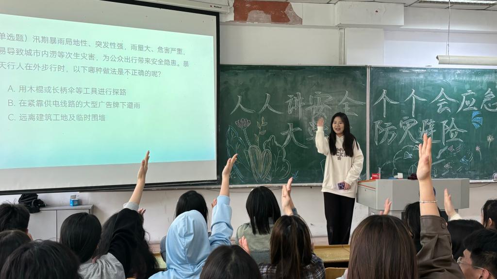 三是在知识竞赛中掌握应急避险安全知识。经济学院开展“防灾减灾知识竞赛”。同学们进行了充分的理论知识学习和赛前练习准备,答题过程快速准确,现场情绪高涨,气氛热烈,充分展现出丰富的避险知识储备。