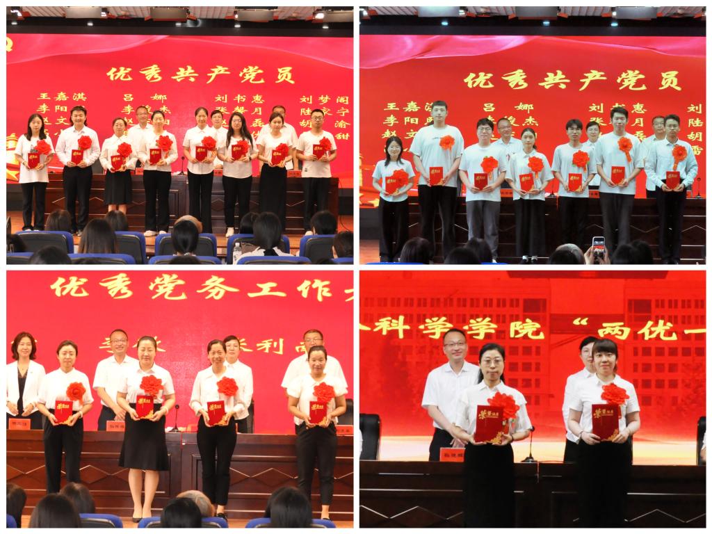 会上,院长曹景萍同志宣读了学院党委《关于表彰优秀共产党员、优秀党务工作者和先进党支部的决定》,与会领导班子成员为受表彰的先进集体和先进个人颁奖;优秀教师党员代表汉语言文学系李阳熙、优秀毕业生党员代表汉语言20-1班雷世甜、优秀在校生党员代表社工21-2班赵文竺分别作了交流发言;学院党委副书记杨凤娟同志领誓重温了入党誓词。