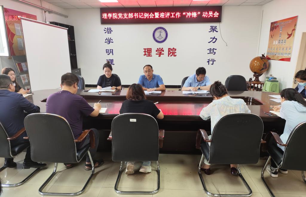 8月20日上午,学院召开了党支部书记例会暨迎评工作“冲锋”动员会。会上,院长张向华对评估工作中的重点、难点、关键点进行解读,号召党员要在迎评工作中先行一步、做深一层,为广大师生做好表率。党委书记贺龙军强调,党支部要在迎评工作中充分发挥战斗堡垒作用和党建引领作用,组织动员好全院师生同心同德、全员参与,营造人人关心评估、人人为评估做贡献的良好氛围。党员要发挥先锋模范作用,率先垂范推进审核评估工作任务,以身作则,冲锋在前,争当迎评促建甘于奉献的“排头兵”。