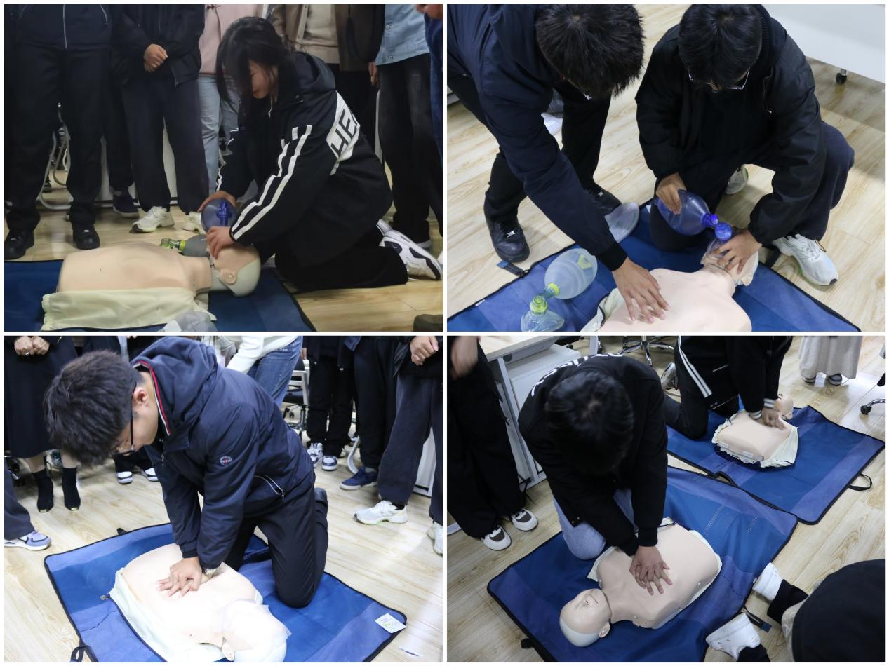 为保证同学们都能准确掌握心肺复苏技能要领,闫峰进行精准教学以及现场示范,确保学习过程中动作要领到位、操作细节完整、教学示范清晰。同学们全神贯注,倾耳细听,踊跃投身于急救实操的互动之中,展现出极高的学习热情与实践兴趣。