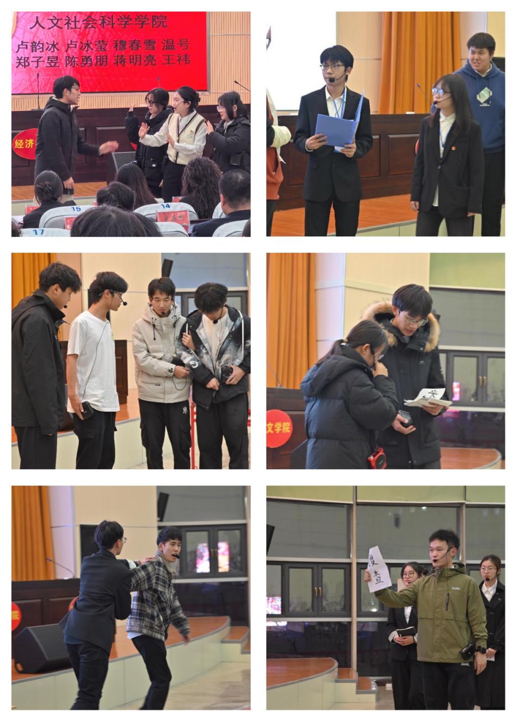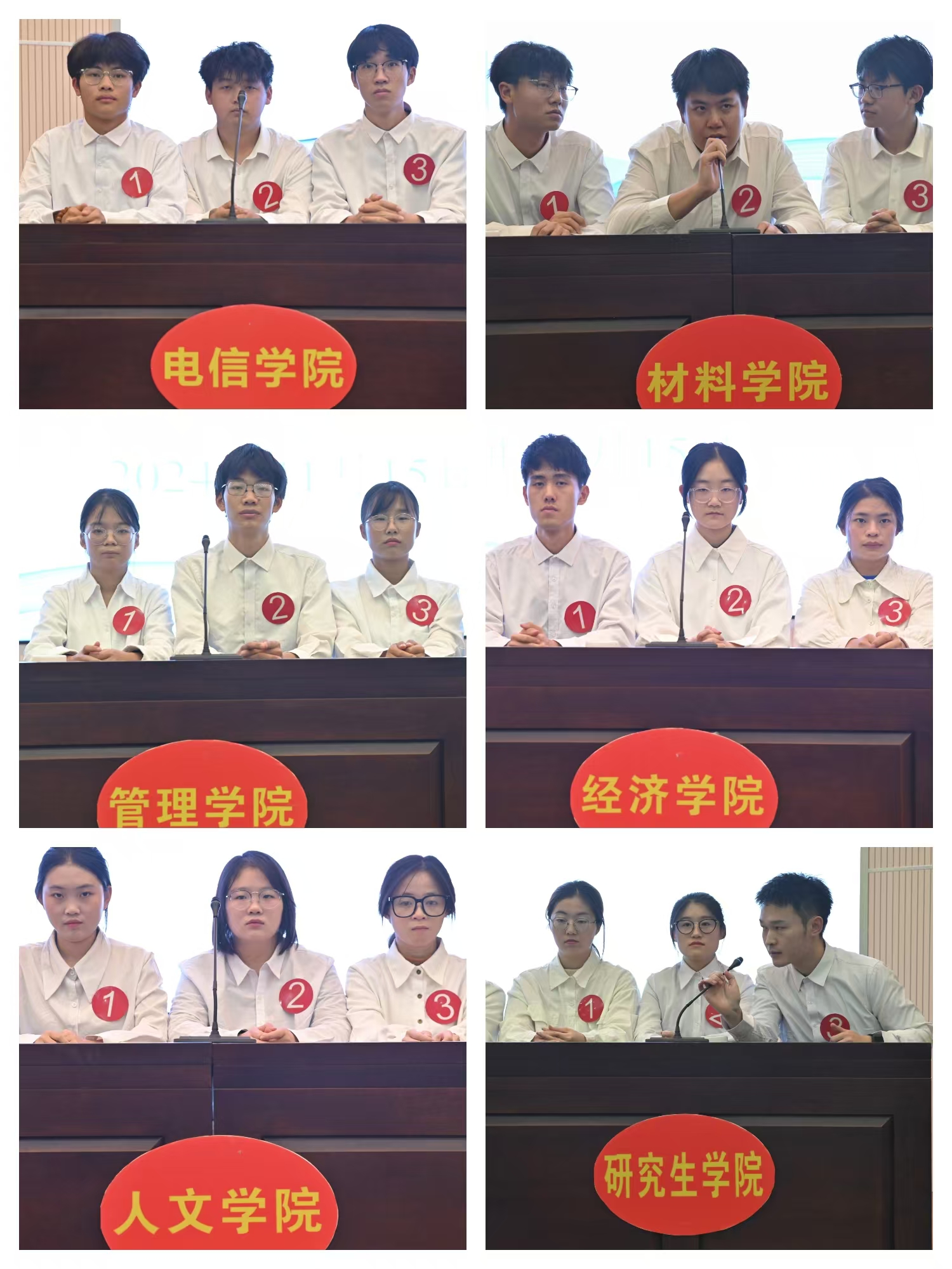 本届“平安杯”知识竞赛历经初赛,复赛层层选拔,最终电信学院、材料学院、管理学院、经济学院、人文学院、研究生学院等6支代表队挺进决赛。决赛采用积分制,通过安全知识竞答和情景剧演绎两轮竞赛总积分决出比赛名次。安全知识竞答内容涵盖国家安全、交通安全、扫黑除恶、消防安全、防电信诈骗、校园贷款、校园诈骗、反恐防暴、食品安全、反邪教宣传、保密安全及反传销宣传等多个方面,情景剧演绎内容根据青年学生现实生活中的真实案例改编。