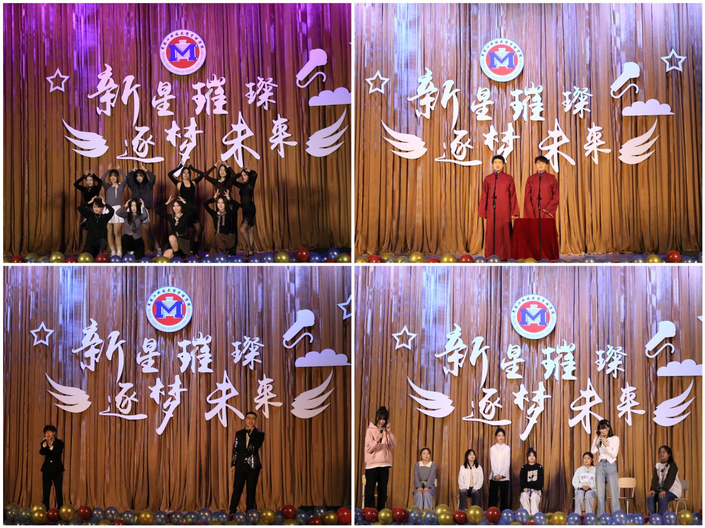 青春燃烧,激情碰撞彰显生命力。在第二篇章“燃烧吧!青春!”中,舞蹈串烧《舞动风潮》以多种舞蹈形式的激情碰撞诠释了青春的无限可能,相声《考上大学后》以诙谐幽默展现了大学生活的真实一面,歌曲《无名的人》唱出平凡者的伟大心声,小品《反诈联盟》在欢笑中传播反诈知识,用艺术温暖现实。