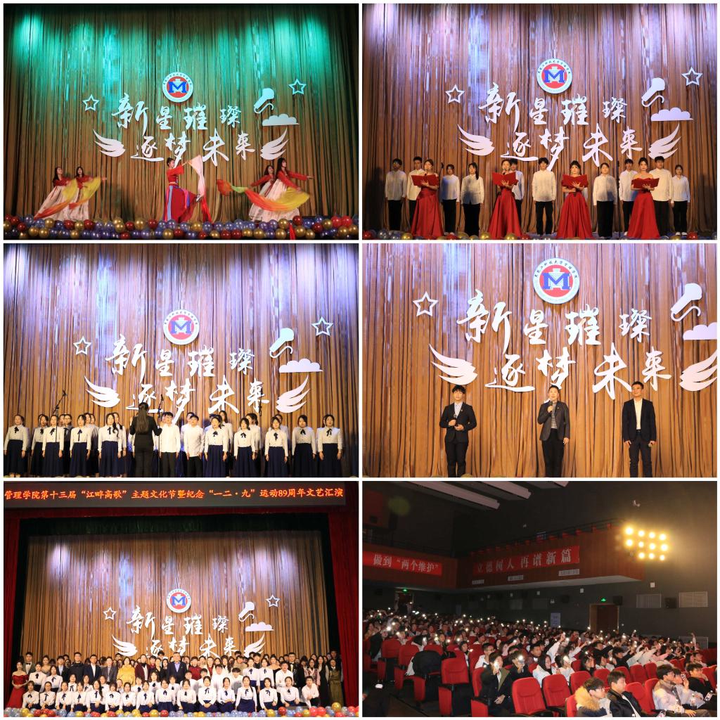 本次“江畔高歌”主题文化节暨纪念“一二·九”运动89周年文艺汇演,是“江畔高歌”主题文化节系列活动以文化人、以文育人的集中体现,生动展现了管院学子的青春活力与艺术才华,深刻彰显了管院学子在传承“一二·九”精神中的时代担当。这场视听盛宴不仅让同学们感受到文化的魅力,更在心灵深处镌刻下“一二·九”精神的时代回响。未来,管理学院将继续秉承开放包容、锐意进取的理念,深化特色品牌文化活动内涵,赓续光荣传统,创新文化表达,在新时代的伟大征程中奋力书写青春华章。