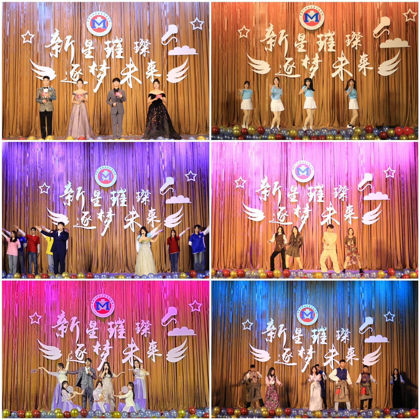 青春奋斗,赤诚热爱逐梦向未来。在第三篇章“奋斗吧!青春!”中,国风舞蹈《光》借飘舞的水扇与长绸勾勒出柔美大气的绚烂青春,朗诵《写中国》以饱含深情的嗓音表达对祖国的无限热爱,合唱《这世界那么多人》以和声描绘五湖四海学子的青春愿景。汇演的最后,2024级辅导员同唱《明天会更好》,用深情的歌声传递祝福,唱响了对未来的希冀,将整场汇演推向了最高潮。