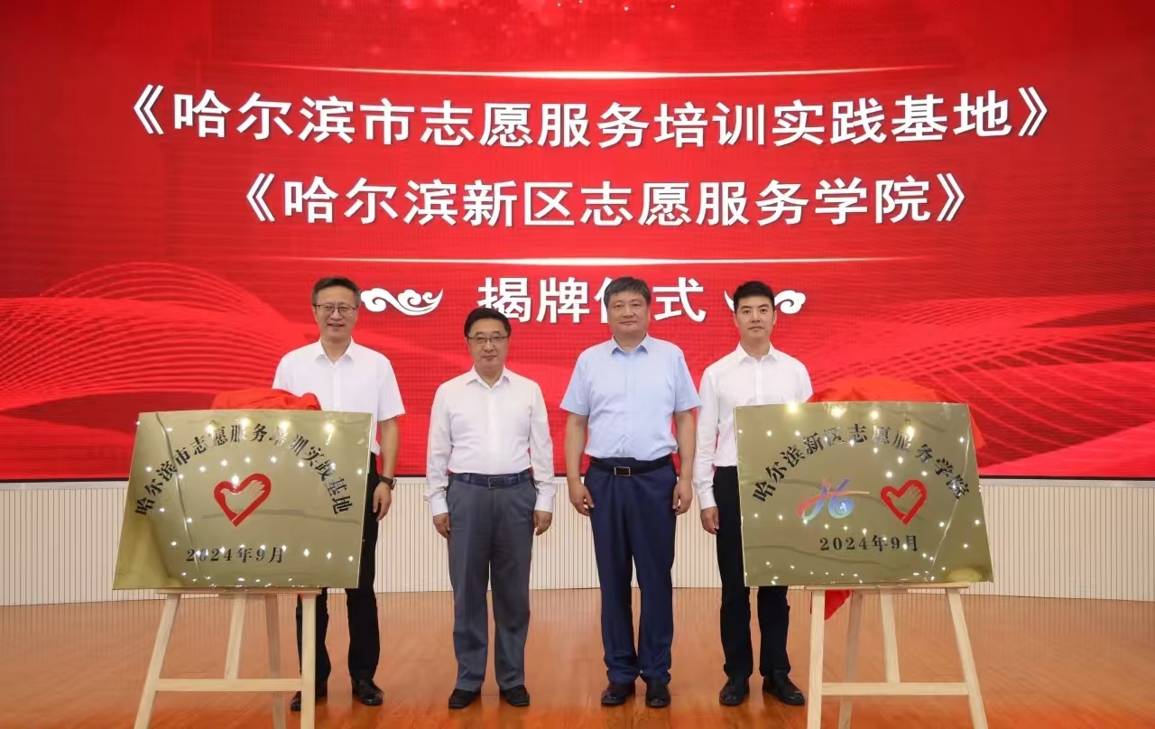 哈尔滨市志愿服务培训实践基地、哈尔滨新区志愿服务学院揭牌仪式隆重举行。省、市、区委社会工作部领导等200余人参加活动。此次活动构建了多主体政校产学合作共同体,为扎实推进“新文科”背景下的产业学院建设奠定坚实基础。