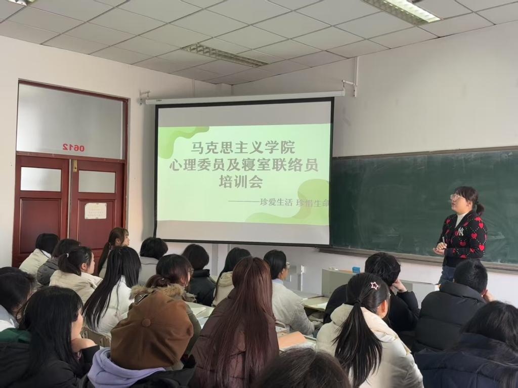 德育引领,让学院心理健康教育“有深度”。活动期间,马克思主义学院充分发挥专业特色,促进日常管理和心理健康教育融合。开展心理委员及寝室联络员培训会,聚焦心理健康“源头预防”与“网格治理”,融合心理教育、安全教育等专题,通过案例分析、互动体验、云端对话等形式,激发学生对生命的深度思考与情感共鸣。