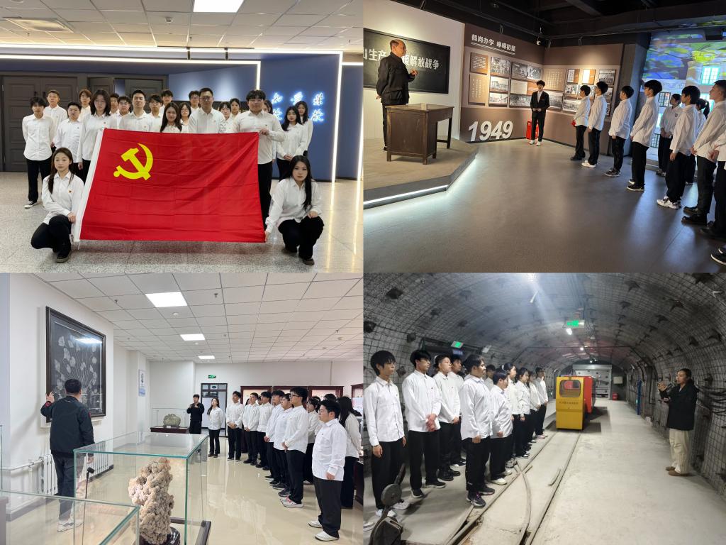 党建引领,传承安全使命。组织学生党员参观校史馆、地质馆和矿业馆,将安全教育与校史文化相结合。在讲解员的引导下,学生们深入了解学校在传承地质矿业文化、弘扬煤炭教育文化,以及普及矿业、矿产与地质科学知识等方面的重要贡献。