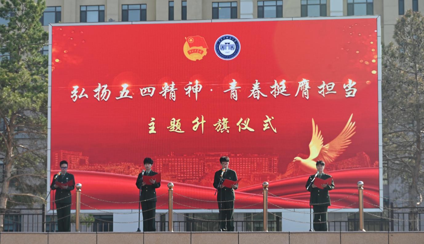 四名退伍学生代表进行国旗下的演讲,他们用洪亮而坚定的声音奏响“五四”精神在参军报国实践中的青春乐章,号召团员青年弘扬“爱国、进步、民主、科学”的五四精神,以奋斗之青春践行“请党放心,强国有我”的铮铮誓言。
