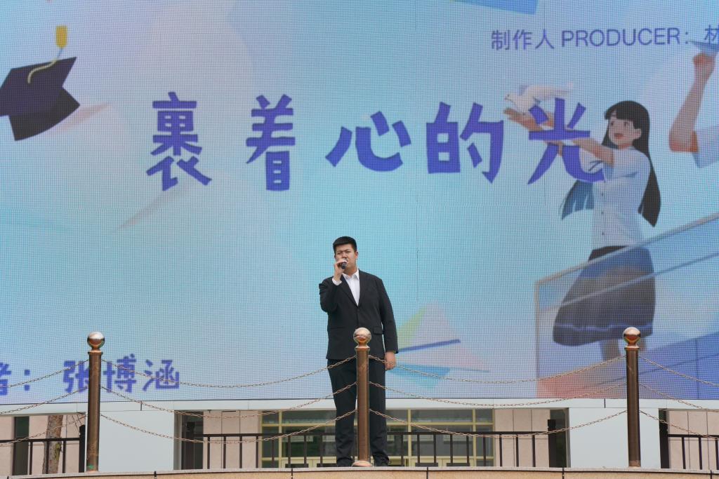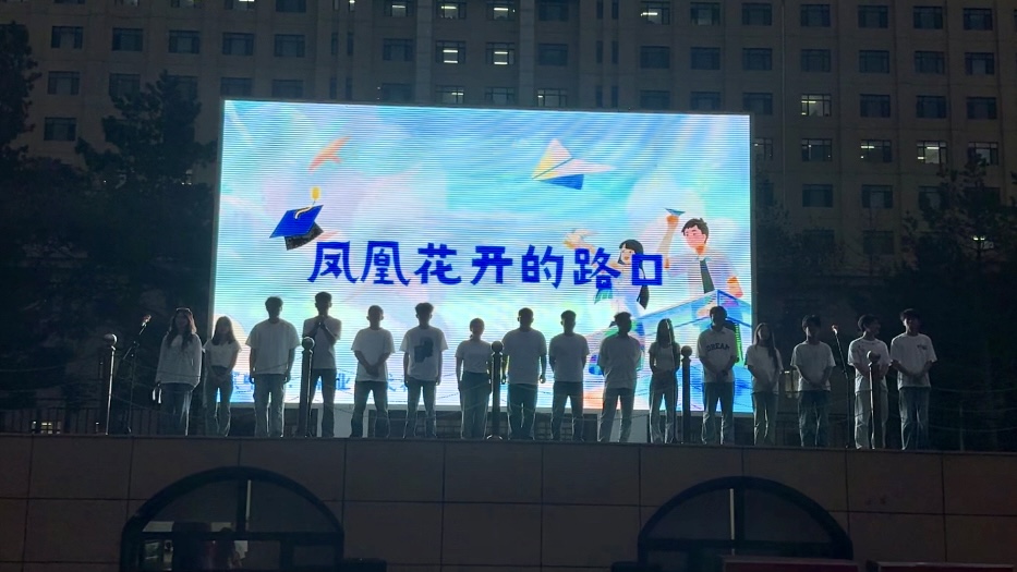 歌曲《裹着心的光》和诗朗诵《中国梦·幻影手机官方网站_幻影(中国)梦》展现了毕业生们对未来充满的坚定信念和对母校的深情告白。合唱《灯火里的中国》传递了幻影手机官方网站_幻影(中国)青年心怀家国、勇担使命的壮志豪情。最后,全场师生合唱《凤凰花开的路口》,歌声中饱含着毕业生对母校的祝福与不舍。