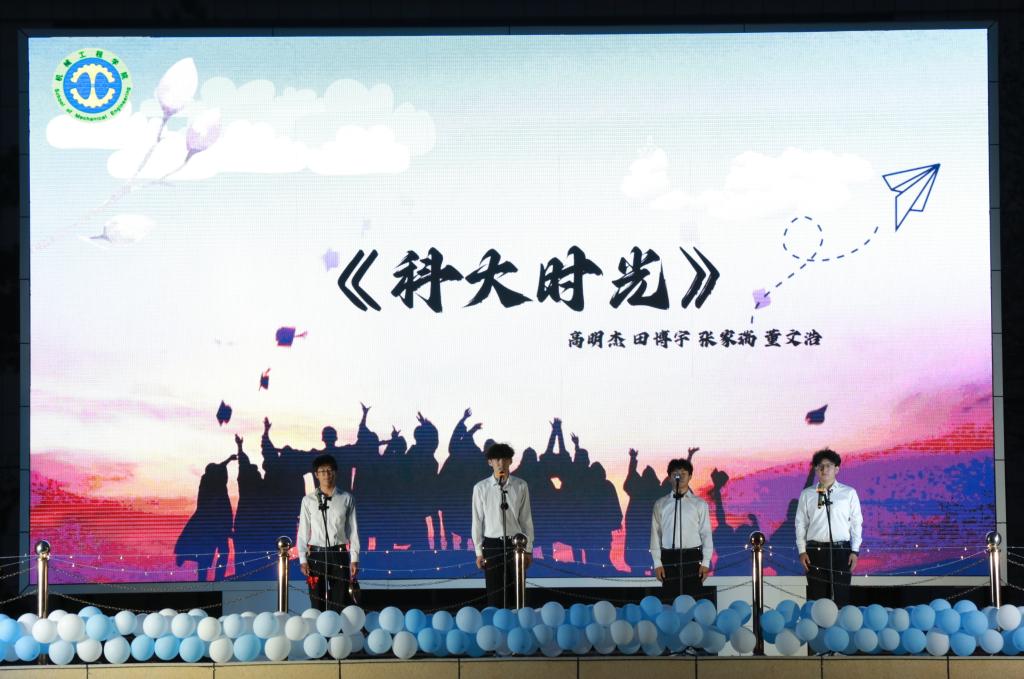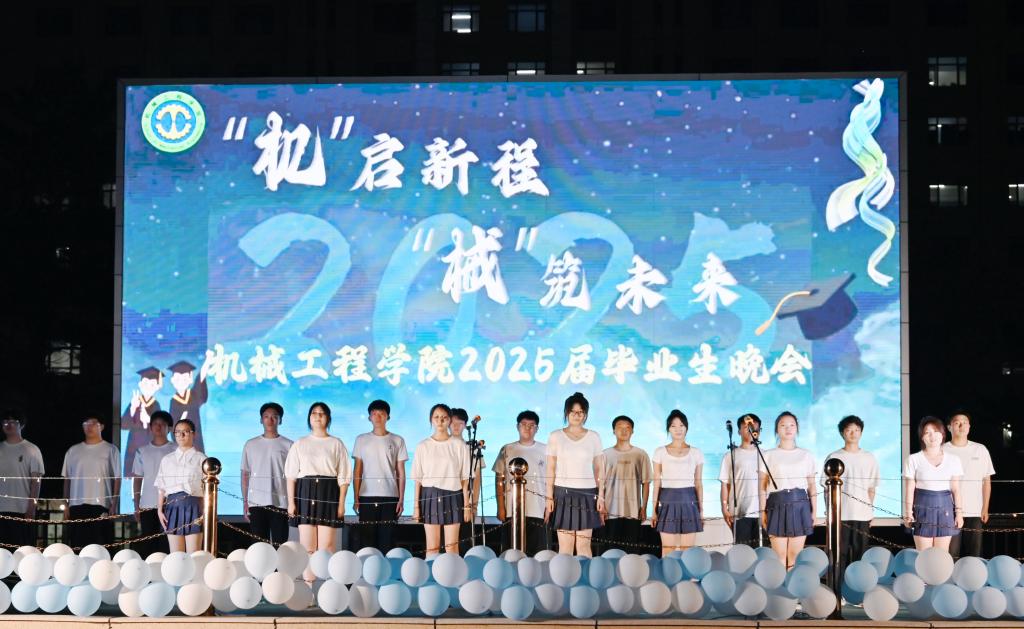 民乐重奏《哪吒》、舞蹈《寄明月》用民族之声彰显文化自信,用坚韧舞步展现奔赴山海的前行力量;歌曲串烧《少年青春》串起岁月碎片,重温逐光热忱与同窗情长;小品《英雄主义》妙趣横生,展示了机械学子求职路上坚守梦想的初心与决心;音乐情景剧《匆匆四年》令人耳目一新,重现了从入学到毕业的历程,一切恍如昨日;相声《神话》笑点频出,传统神话焕新趣,笑料与巧思齐飞;三句半《毕业时光》用真挚话语触动人心,勾起毕业生对校园生活的深深眷恋;辅导员老师们以歌曲《祝你一路顺风》传递温情祝福,表达不舍之情;晚会在机械学院合唱团演唱的《这世界那么多人》中落下帷幕。