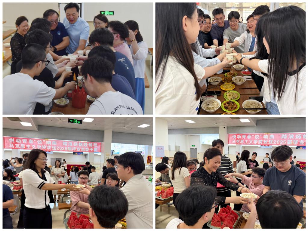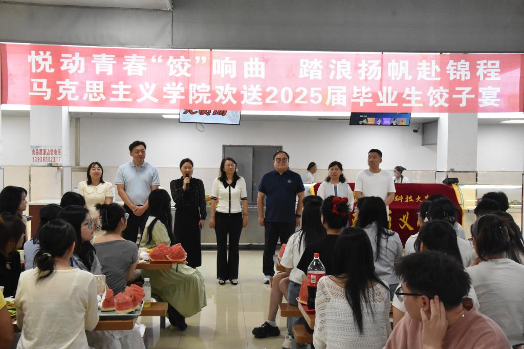 仲夏骊歌起,饺香话离别。为做好2025届毕业生离校工作,营造温馨和谐的毕业氛围,6月18日,马克思主义学院在沁香园二楼举办“悦动青春‘饺’响曲 踏浪扬帆赴锦程”欢送2025届毕业生饺子宴活动。学院全体领导、专业教研室主任、辅导员和2025届毕业生参加了本次活动。活动由学院党委副书记李宁主持。