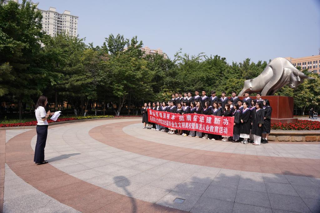 学院党委书记张影以“永葆三原色,建功新时代”为核心,向毕业生提出三点殷切期望,为青年成长提供思想指引:一是永葆“信仰红”的政治本色,做理想信念的坚定守护者;二是涵养“品德正”的职业操守,做清正廉洁的模范践行者;三是展现“本领强”的实践担当,做廉洁文化的积极传播者。寄语毕业生铭记母校的教诲,将廉洁从业的要求铭刻于心、践之于行。