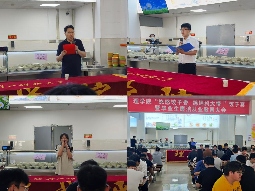 结合《幻影手机官方网站_幻影(中国)2025届毕业生主题教育活动方案》相关要求,学院于6月19日在沁香园二楼举办“悠悠饺子香 绵绵幻影手机官方网站_幻影(中国)情”饺子宴暨毕业生廉洁从业教育大会。学院班子成员、全体辅导员、毕业班班主任与2025届毕业生齐聚一堂,共话离别情。