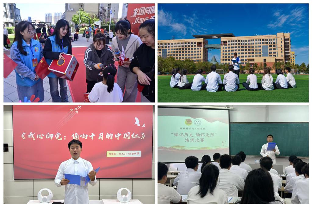 电信学院团委、经济学院团委、理学院团委组织学生集体观看红色影片,深刻感悟革命先辈们建党的初心与使命,增强对党的崇敬和热爱之情,将这份热情转化为强国的实际行动。环化学院团委、电气学院团委、研究生学院团委组织团学骨干分别赴东北烈士纪念馆、黑龙江省民族博物馆、萧红故居,在历史的印记中铭记先辈们的奉献与牺牲,汲取砥砺前行的精神动力。建工学院团委组织青年志愿者赴松北区碧桂园社区开展“家国同圆庆国庆” 志愿服务活动,在服务他人中彰显青春担当,诠释奉献精神。矿业学院团委举办“铁血铸山河,书香承薪火”读书沙龙,青年学生在研读《红岩》一书中感受革命先辈们可歌可泣的故事,在字里行间汲取爱国力量。机械学院团委、材料学院团委、外国语学院团委分别组织开展演讲、朗诵等比赛,同学们饱含深情、激昂澎湃的诵读,仿佛声声誓言,传递着对祖国的热爱与忠诚。