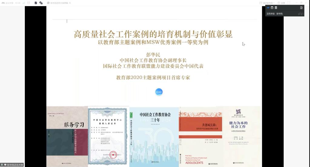 报告中,彭华民教授结合研究经验与典型案例,系统阐释高质量社会工作案例的核心特质与培育逻辑,从选题定位、实务记录、经验转化、价值挖掘等关键环节剖析培育机制,并深入解读案例撰写的专业特色凸显、问题规避等实操技巧。