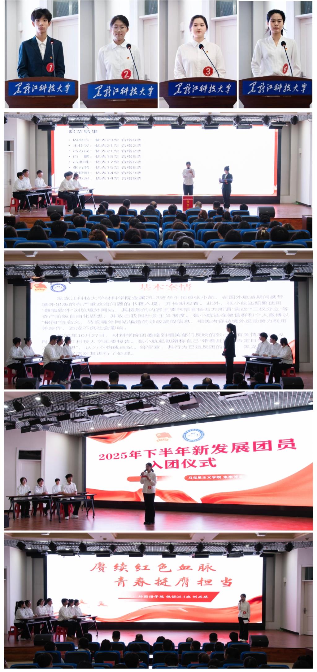 随后,第24期团校结业式接续举行,全面总结了团校在课程教学、理论研讨、素质拓展、志愿服务等方面的实施成效,表彰了团校优秀学员。本期团校共有正式学员157名,实现2025级团支部全覆盖,聚焦三大培训重点实现精准赋能:一是深学团章团纪,筑牢思想根基。通过专题解读、案例分析、知识测试等形式,引导学员以团章为“行为准则”、以团纪为“底线红线”,深刻践行“党有号召,团有行动”的青春宣言;二是聚焦学风建设,凝聚青春动能。开设“精品学风活动策划”课程,拆解“晨读打卡”“学业帮扶”等活动经验,推动学员形成可落地的学风班风建设思路;三是强化团务实操,提升履职能力。通过“智慧团建”“龙江志愿”平台实操、支委会运行指南等课程,解决团干部“懂理论、欠实操”的痛点,实现 “学得会、用得上”的培训目标。