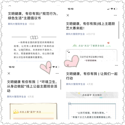 本次系列活动的顺利开展,在深入贯彻绿色环保理念的同时充分夯实了管院学生文明健康教育工作的基石,带动管院学生提升自身修养,加强理论学习,将文明健康、绿色环保的意识自觉牢固于心,外化于行。生逢其时,重任在肩,此次活动为管院全体学生助力抗“疫”取得最后胜利打下思想强心剂的同时更加坚定了管院学子以爱国、励志、求真、力行书写青春之歌的豪迈信念!