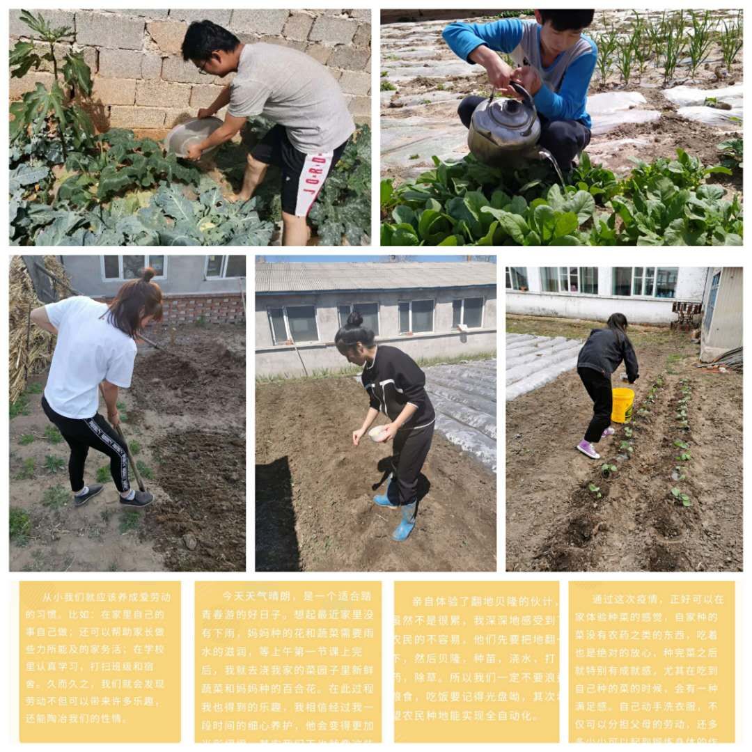 学院通过团委公众号推出“传承劳模精神”、“寻找身边最美劳动者”等专题栏目,积极引导学生们理解并形成马克思主义劳动观,牢固树立劳动最光荣、劳动最崇高、劳动最伟大、劳动最美丽的观念;通过鼓励学生积极参与农业种植劳动,让学生体会从播种、发芽、开花到收获的整个过程,充分体验到农业劳动的艰苦,体会到劳动创造美好生活,体认到劳动不分贵贱,热爱劳动,尊重普通劳动者,培养勤俭、奋斗、创新、奉献的劳动精神。他们亲历农耕劳作,观察自然生态,这不仅仅是一种劳动教育,更是一种生存教育;引导学生利用网课闲暇时间积极参与家务劳动,青年学生们主动发起“劳动打卡”活动,倡议每天居家劳动1小时,通过实践使劳动教育更好地融入学生的生活,学生们也养成了良好的劳动习惯和劳动能力。