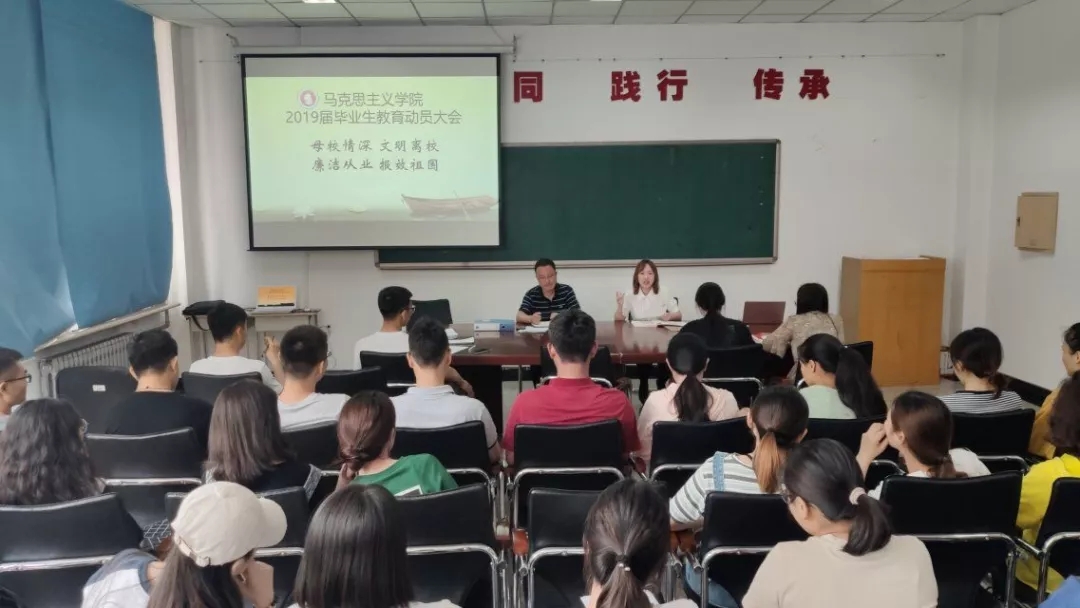 一次座谈会即马克思主义学院2019届毕业生座谈会。马克思主义学院于6月17日在科高二楼会议室召开2019届毕业生座谈会。座谈会广泛征求毕业生对母校发展的意见建议,为加强学校、学院教育、管理、服务工作水平提供实际依据。