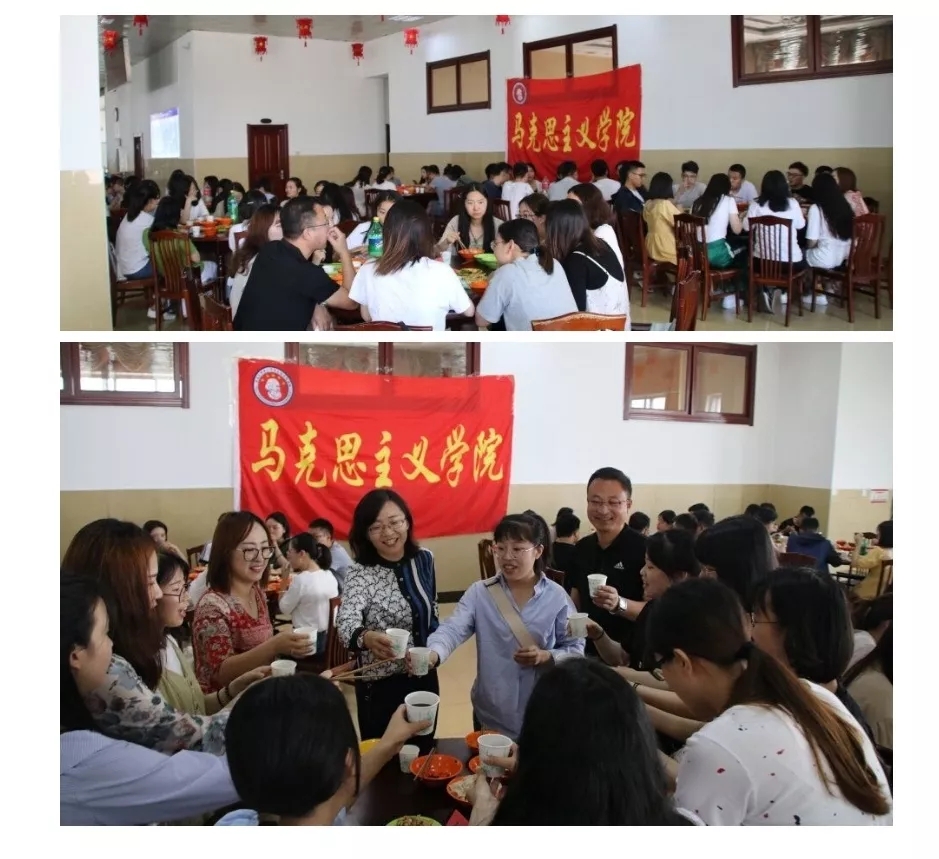 吃一次饺子即“相亲相爱一家人”吃饺子活动。马克思主义学院于6月19日在沁芳园三楼组织全体毕业生集体吃饺子。上车饺子下车面,送君一程终须一别,学院领导及辅导员和所有毕业生共进午餐,进一步加深了老师与学生之间的情感和友谊。