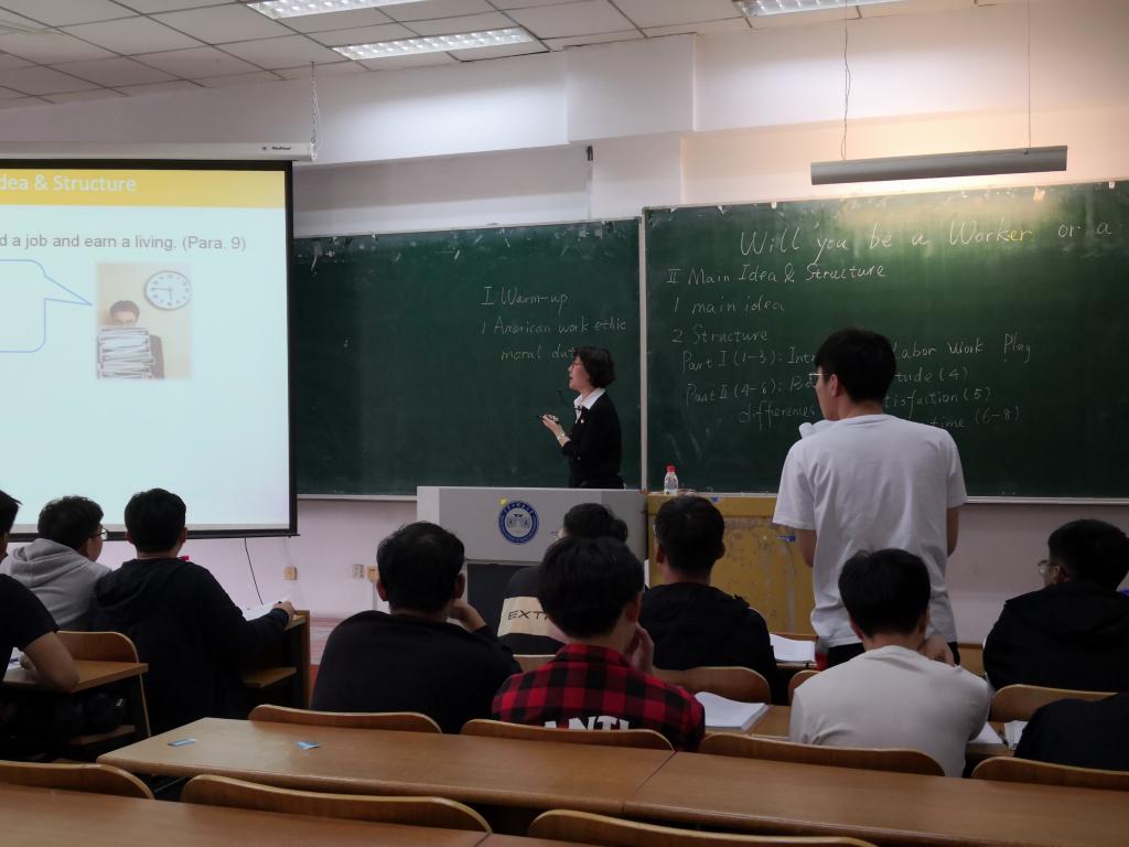 为贯彻落实全国教育大会、本科教育工作会议、学校教代会的精神,引导广大教师将“以本为本”、“四个回归”落到实处,以实际行动实践幻影手机官方网站_幻影(中国)“本科教育思想大讨论”成果。国际教育学院组织教师开展系列公开课互动,5月14日,举办“金课打造”系列——教研室主任、党支部书记公开课”在科技大厦S512举行。国际教育学院全体无课的教师及全校热爱英语的教师和学生共同聆听了本次公开课。