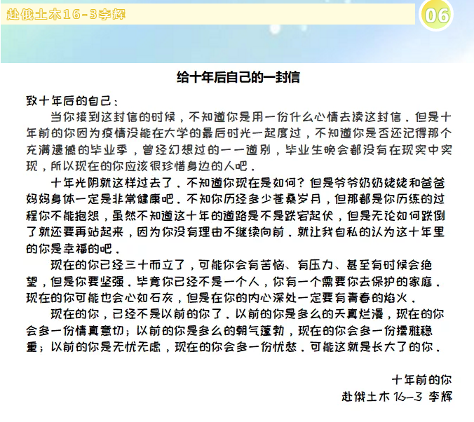 致未来——写给十年后自己的一封信