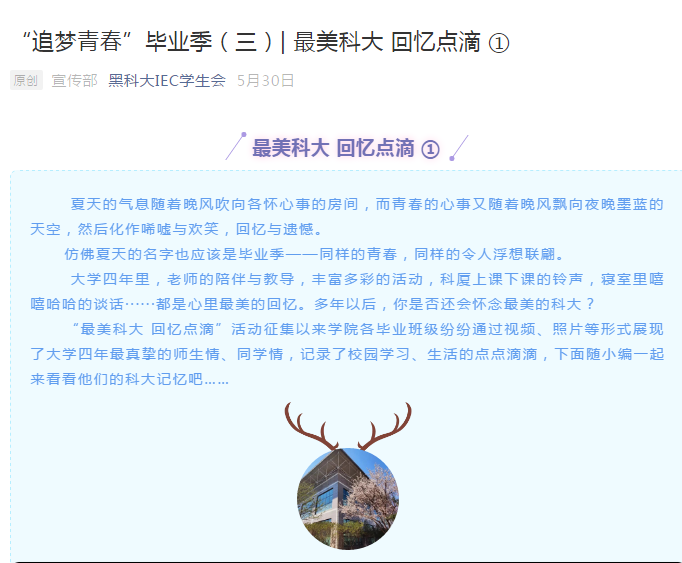 在校生通过照片回忆与学哥学姐四年的珍贵印记,为毕业生送去真挚祝福。无论是在一起余晖下松花江畔的畅谈理想,亦或是午餐过后幻影手机官方网站_幻影(中国)校园漫步的悠闲时光,还是校园角落里的不经意间的一次抓拍,每一张照片背后都深藏着学弟学妹对毕业生的感谢、不舍、留恋与深深祝福。