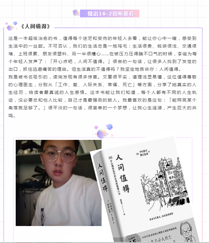 为营造毕业季浓情氛围,抒发毕业生们情系母校、心系学弟学妹的真挚情感,面向毕业生开展了推荐书籍活动,毕业生们从自己的阅读心得出发,畅谈读书感受和收获,推荐分享给学弟学妹们,他们用一本本书传递着浓浓的情谊,让学弟学妹在读书中感受学习的快乐,体验成长的乐趣,不断提高自我阅读品位,为精神打底,为人生奠基。