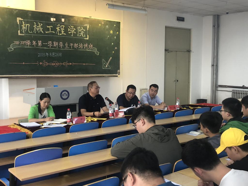 8月26日上午,机械工程学院召开了新学期学干培训班,本次会议采取主会场和分会场形式。学院党委副书记吴新文出席了本次大会,会议由辅导员郝鑫主持。会上,吴新文从“总结成绩、认清形势、再续华章;深入认识专业认证,争取一次通过;加强大学生思想教育,继续提升各方面能力”三个方面做了精彩的讲座,为学院新学期各项工作任务开好局、起好步打下坚实的基础。会前,负责学生组织工作的辅导员分别于分会场召开学生干部培训,有针对性的对本学生组织进行专业化、规范化、科学化指导。(郝鑫/文)