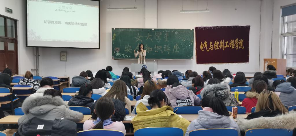 为提高女大学生安全防范意识,加强安全知识储备,提升必备安全素养,关爱女大学生身心健康,增强自助自救能力,电气学院于11月25日下午在主楼WS0101举办女大学生安全知识讲座,由辅导员张孟洁主讲,全体2019级女生参加。