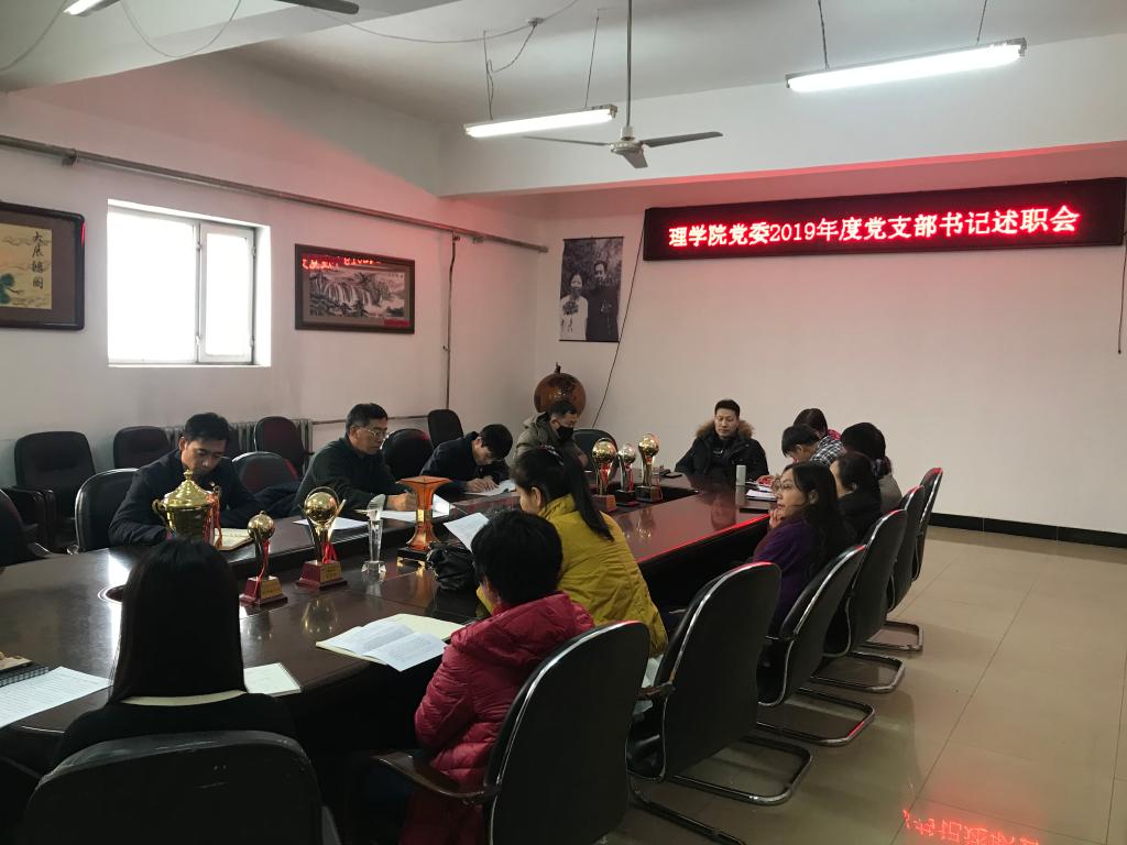 1月6日下午,理学院党委在学院二楼会议室召开2019年度党支部书记抓党建工作述职评议会。学院党委委员、各党支部委员、系部负责人参加了会议,会议由理学院党委书记、院长王建国主持。