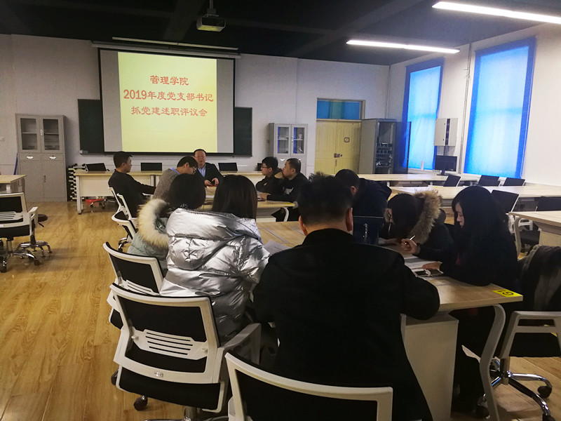 1月9日下午,管理学院在一楼会议室召开了党支部书记抓党建工作述职评议会。学院班子成员及全体党支部书记参加了会议,会议由学院党委副书记张晓光主持。