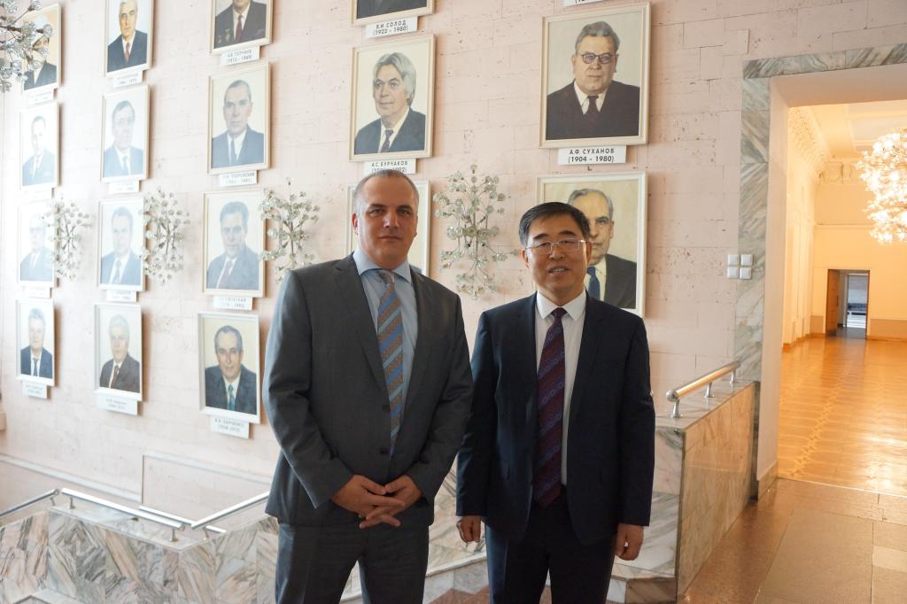 副校长郝传波与乌拉尔矿业大学校长杜申会面