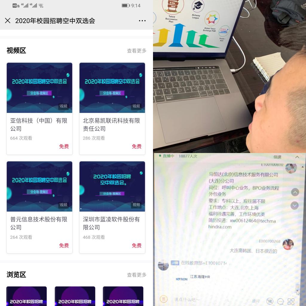此次双选会是由我院和中软国际集团联合主办,得到了中国软件行业协会的大力支持,成功邀请到包括亚信科技(中国)有限公司 、北京思特奇信息技术股份有限公司、普华永道信息技术(上海)有限公司、泛微软件有限公司、埃森哲等国内知名的IT企业117家参与线上招聘活动。此次招聘活动也是我院针对当前疫情,最大程度解决我院毕业生就业工作的一次大胆尝试。活动当天,由辅导员和班主任带队,组织近230名2020届毕业生进入每个企业的分会场,组织学生与企业进行面试260余人次,共投递简历600份,达成就业意向34人。另外,部分2021届毕业生也积极参与到此次双选会中,有部分企业达成意向实习协议。