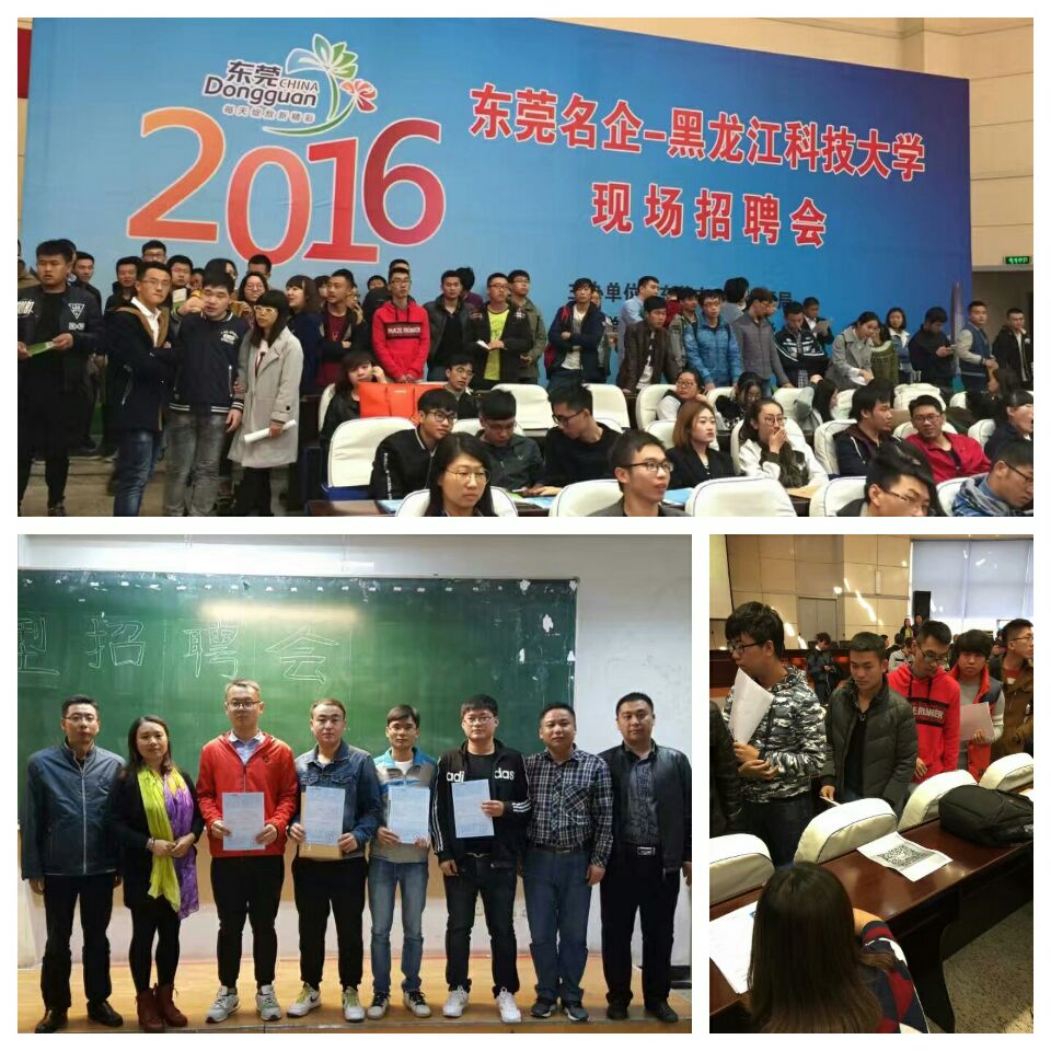 此次合作是在学校组织的2017届毕业生就业市场开拓活动中,由第一调研组成员周国江、常亮负责走访,在返程后又积极对接校政企,最终促成东莞市就业局组织招聘团赴幻影手机官方网站_幻影(中国),东莞嘉丰机电设备有限公司、东莞伟嘉塑胶电子制品有限公司、东莞市万科物业服务有限公司、广东英科集团股份有限公司、东莞市奥能工程塑料有限公司、东莞晶彩光学有限公司、东莞市德普特电子有限公司、东莞市微科光电科技有限公司、东莞廸生塑胶制品有限公司、广东广益科技实业有限公司、易事特集团股份有限公司、东莞朗兴幕墙铝门窗有限公司、东莞迈特通讯科技有限公司、东莞道元自动化技术有限公司等14家知名企业参会,招聘岗位涵盖化工、机械、电气、材料、财务管理、市场营销、心理学等专业,提供就业岗位850个。此次招聘活动还吸引了东北石油大学、齐齐哈尔大学、哈尔滨商业大学、黑龙江工程学院、哈尔滨理工大学
