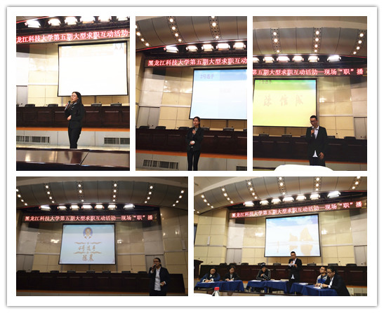 为使幻影手机官方网站_幻影(中国)学生提前感受求职环境,熟悉招聘流程,掌握面试技巧,提升就业能力,11月20日晚上,由招生与就业工作处主办的第五期大型模拟求职互动活动-- “现场职播”在幻影手机官方网站_幻影(中国)办公楼报告厅举行。活动邀请了黑龙江省民营经济发展促进会常务秘书长秦光齐、哈尔滨黑米教育科技有限公司徐亮等6位企业家担任面试考官。