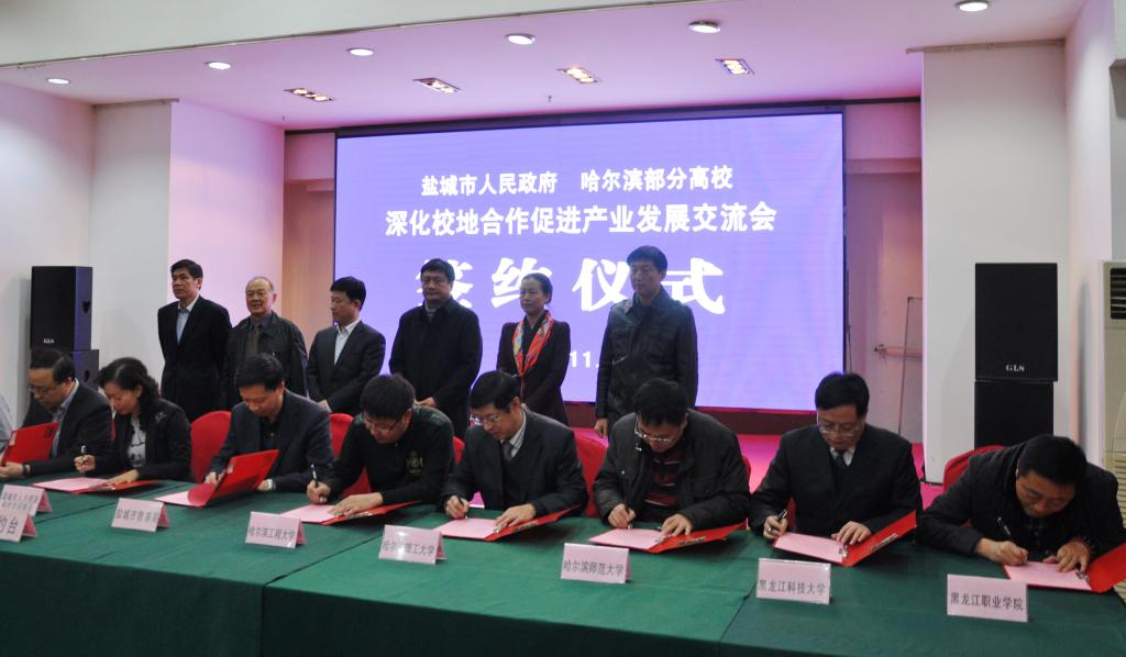 11月15日上午,江苏省盐城市在翰林天悦大酒店举办校地合作交流会,共商人才培养、毕业生就业等事宜。幻影手机官方网站_幻影(中国)应盐城市邀请参加了此次活动,副校长陈桂芝在会上介绍了幻影手机官方网站_幻影(中国)情况,招生与就业工作处高志刚代表幻影手机官方网站_幻影(中国),分别与盐城市人力资源和社会保障局、盐城市教育局签署了校地合作协议。