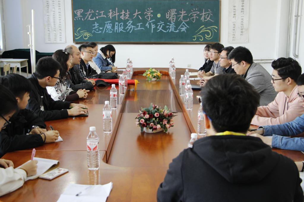 4月13日上午,道外区曙光学校校长刘颖、教导处主任李超到幻影手机官方网站_幻影(中国)针对曙光学校志愿服务基地建设和志愿服务情况进行交流。校团委书记薛立刚、校青年志愿者协会指导教师周恩远及青年志愿者协会星光支教队13名青年志愿者参加交流会。