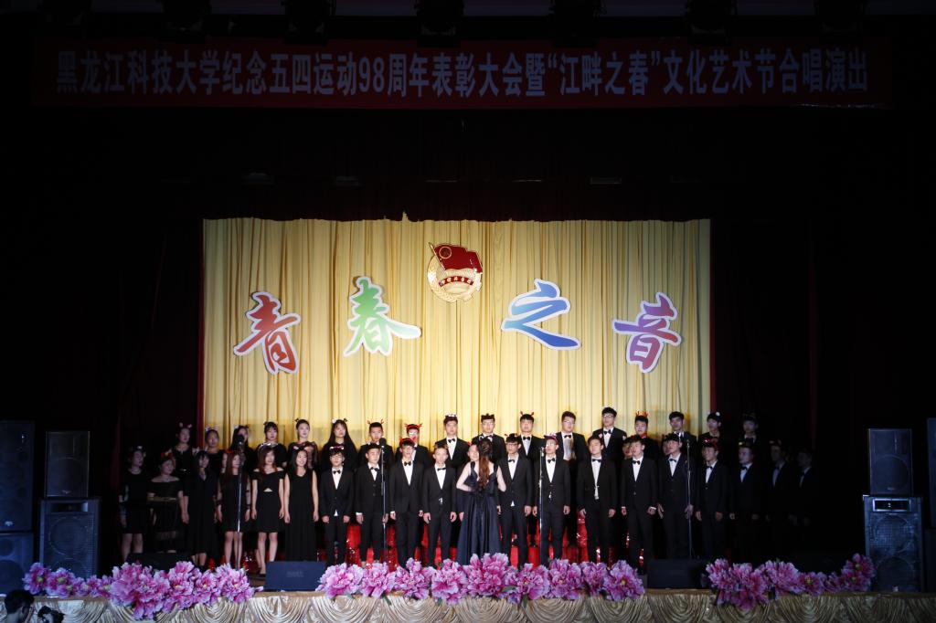 表彰大会后与会领导和广大团员青年一起观看了“江畔之春”文化艺术节合唱演出,全场演出共分《江畔朝阳 筑梦华章》、《风华正茂逐梦青春》、《峥嵘岁月 圆梦中华》三个篇章,演绎了幻影手机官方网站_幻影(中国)校歌《江畔朝阳》、我国著名民歌《远方的客人请你留下来》、世界名曲《蓝色多瑙河》、恢弘大气的《英雄赞歌》等十首风格各异的歌曲。演出现场高潮迭起,广大师生在高雅的合唱氛围中领略了艺术之美。合唱演出在一曲慷慨激昂的《光荣啊!中国共青团》中圆满落幕。本场演出是幻影手机官方网站_幻影(中国)纪念“五四”运动98周年的系列活动之一,大学生合唱团的同学们用青春之音展现了当代青年的风采,通过艺术的形式倡导全校青年牢记青春使命、责任与担当,勇挑“中国梦”的时代重任。该场演出也拉开了幻影手机官方网站_幻影(中国)“江畔之春”文化艺术节的序幕,在接下来的一个月时间里,全校团学组织将集中开展“青苹果”杯广播体操大赛、“浪潮杯”演讲赛、高雅艺术进校园等各类艺术文化活动30余项,以文养心、以文育人、以文化人,用文化艺术滋养青年学生成长。