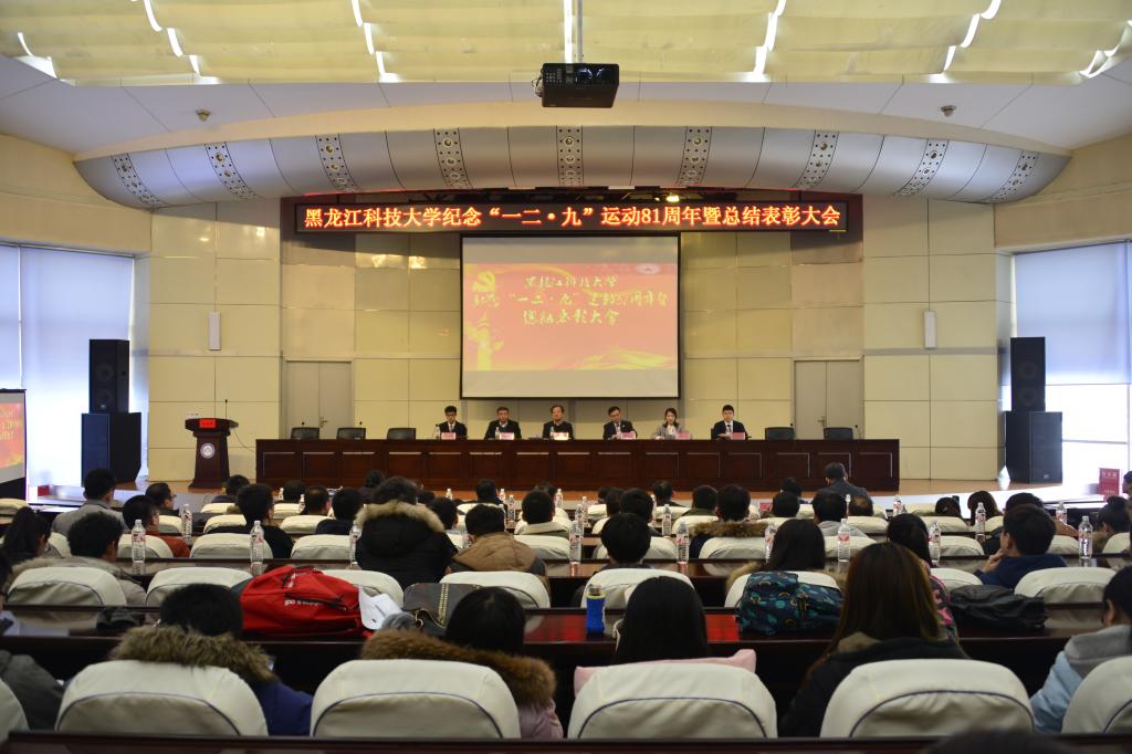 会上,与会人员观看了纪念“一二·九”运动81周年爱国教育宣传片;校团委书记薛立刚宣读了《关于表彰2016年度“优秀学生分会”、“学生分会单项奖”、“优秀班集体”、“优秀学生干部”、“学风建设先进个人”、“校园文化建设先进个人”的决定》,与会领导向受表彰的先进集体和个人代表颁发了荣誉证书;计算机与信息工程学院学生分会、机械14-1班以及自动化14—4班程晋培同学分别代表优秀学生分会、优秀班集体、先进个人做了典型交流。