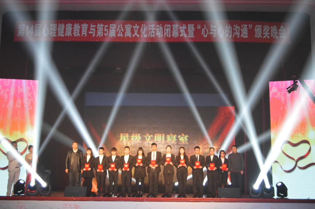 立德树人,与爱同行。12月1日晚,第十四届心理健康教育与第五届公寓文化活动闭幕式暨“心与心的沟通”颁奖晚会在俱乐部举行。校党委副书记张明华、学工部领导出席闭幕式并为获奖单位颁奖。各学院负责学生工作领导、学工部全体工作人员、全体辅导员及师生代表共同观看了晚会。