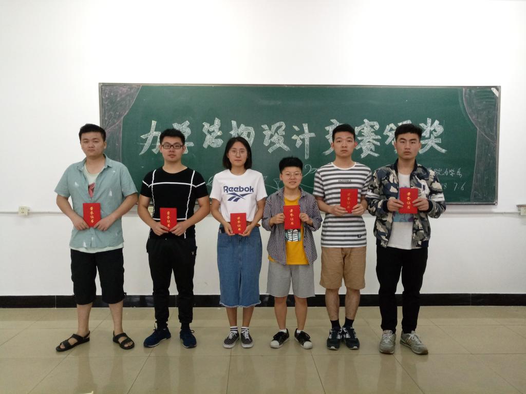 竞赛得到了校团委和理学院的大力支持。在课程负责人于月民教授的带领下,材料力学课程教学团队在竞赛宣传、加载测试和说明书撰写等各环节精心组织,严格把关。6月2日如期进行作品上交和加载测试,评出一等奖9组,二等奖14组,三等奖20组,创意奖4组,优秀志愿者5人。