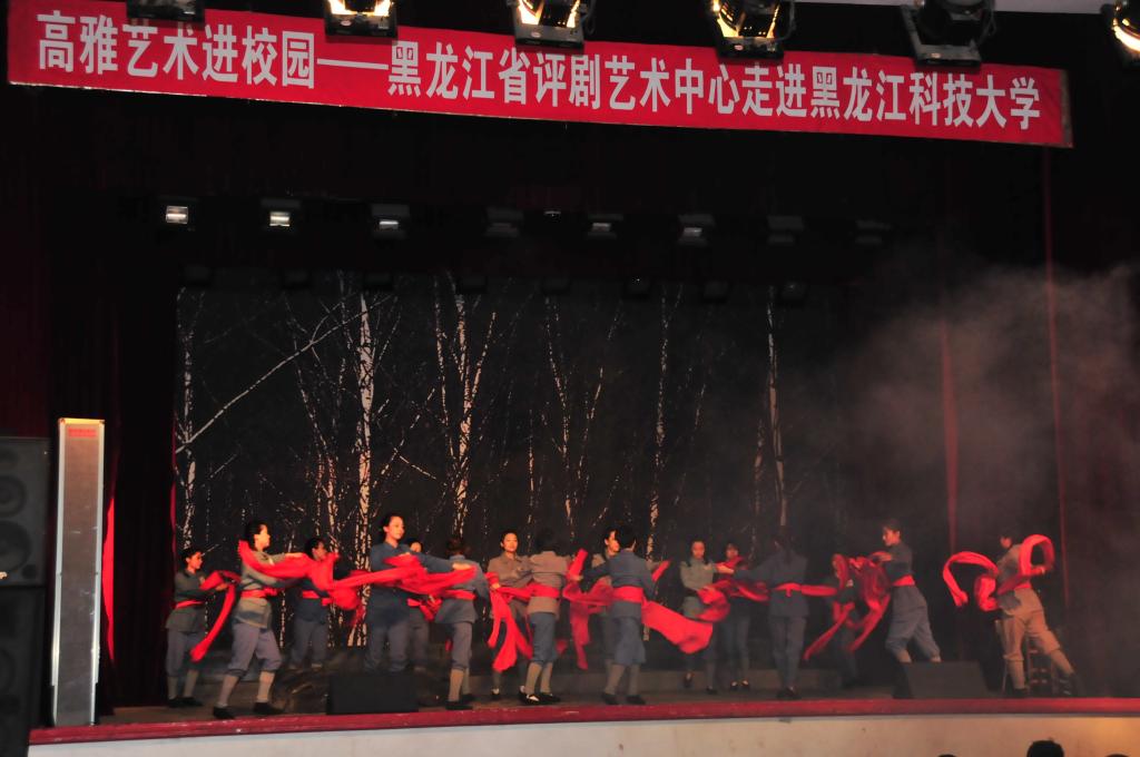 本次活动是由省教育厅、文化厅、财政厅共同主办的高雅艺术进校园活动,幻影手机官方网站_幻影(中国)积极与省评剧艺术中心展开对接,通过前期对演出场地、演出剧目等环节的精心设计,确保了活动质量,意在通过高雅艺术陶冶师生情操,提高艺术修养。黑龙江省评剧艺术中心是我国唯一省级评剧院团,黑龙江省评剧被列入第三批国家级非物质文化遗产名录。本次评剧艺术中心携经典剧目《半江清澈半江红》来到幻影手机官方网站_幻影(中国)进行专场演出。该剧是根据东北抗联“八女投江”史实创作而成,描写的是1938年10月东北抗日战争最残酷时期,抗联五军妇女团指导员冷云等8位姐妹,在战斗的间隙以革命乐观主义精神诠释生命的活力和浪漫。在抗联主力被围的情况下,妇女团毅然承担掩护大部队突围的重任。最后,她们在三面受敌的情况下,毅然投入波涛滚滚的乌斯浑河,谱写了一首史诗般的英雄赞歌。