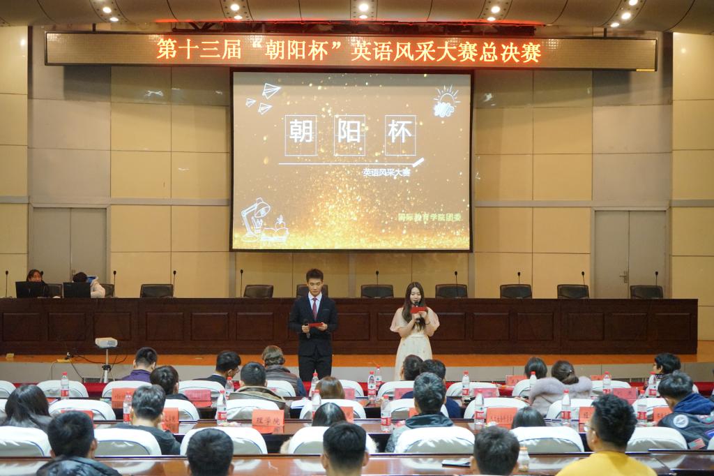 12月12日,国际教育学院在办公楼报告厅举办了第十三届“朝阳杯”英语风采大赛决赛。大赛评委由国际教育学院副院长杨兆楠、外籍教师卡梅隆、英语教师吴春蕾、李双平、李颖担任,国际教育学院党委书记邬承斌、院长母丽华、全体辅导员及兄弟学院团委副书记参加了活动。