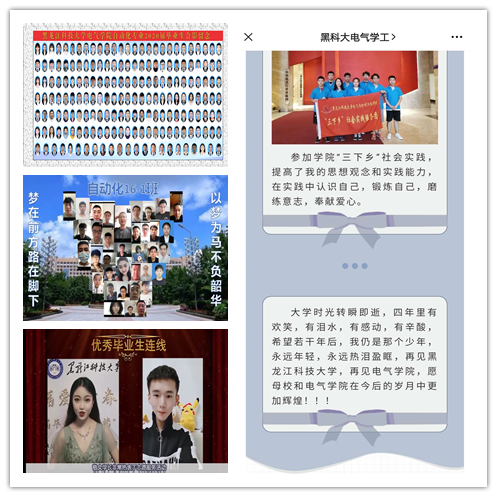 按照学校“青春激昂 逐梦起航”毕业生“十个一”主题教育活动要求,学院结合疫情期间工作实际,创新教育形式,丰富教育载体,细化教育内容,明确各项教育工作责任人,分片包干,确保各项教育工作取得实效。开展了留下一份谏言、抒发一段情感、分享一次经验、召开一次班会、“云”合影、组织一次党活、参加云端毕业典礼、观看云端毕业演出等等,全体毕业生通过云端表达了对幻影手机官方网站_幻影(中国)的感激之情。