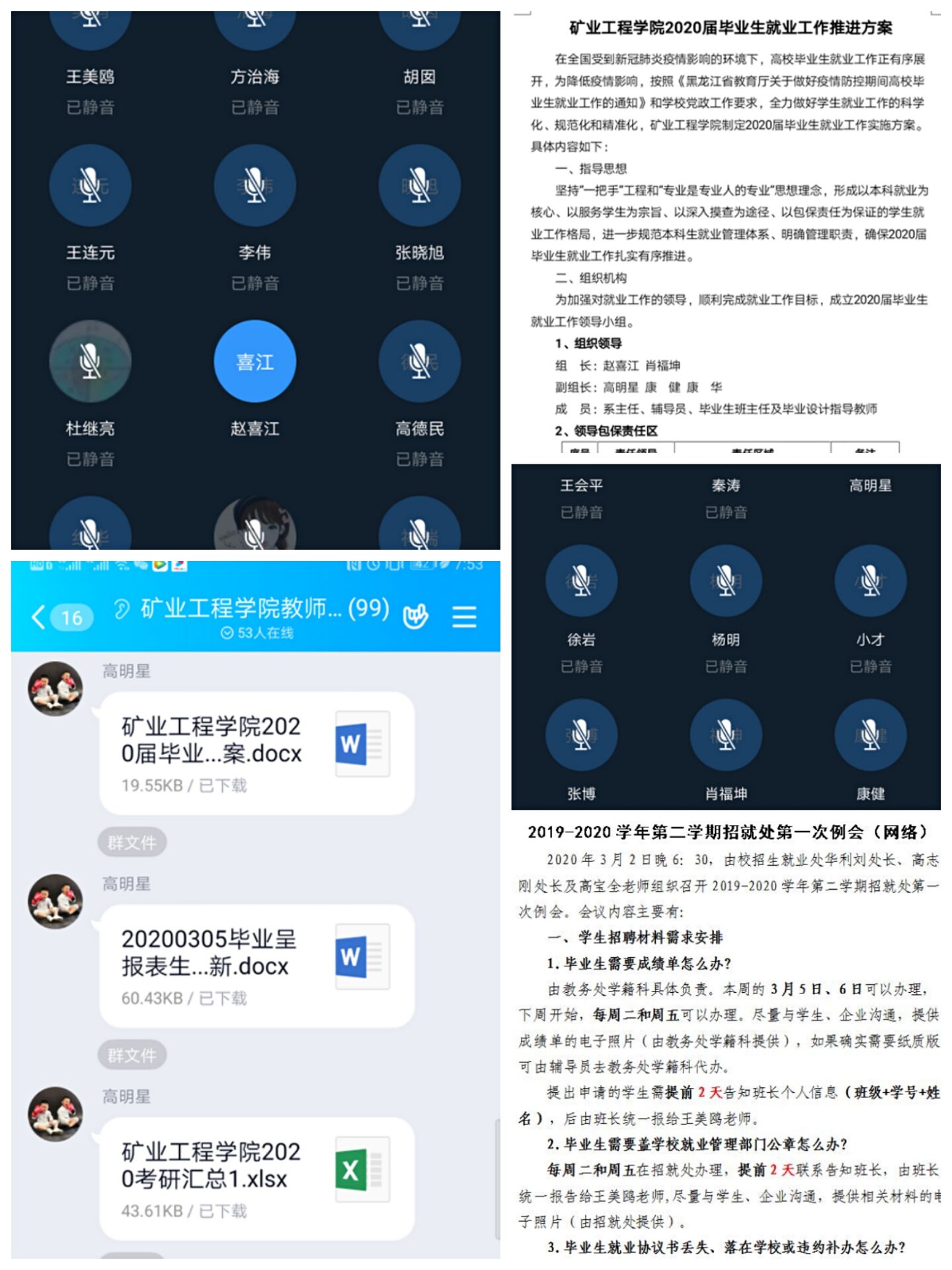 为深入贯彻落实学校党政关于毕业生就业工作的决策部署,在疫情期间做好学生就业工作,矿业工程学院于3月9日通过钉钉网络会议组织召开党政联席扩大会议暨专项就业工作。学院党政班子成员,综合办学工办人员、系主任、毕业班班主任参加了会议,会议由学院党委副书记高明星主持。