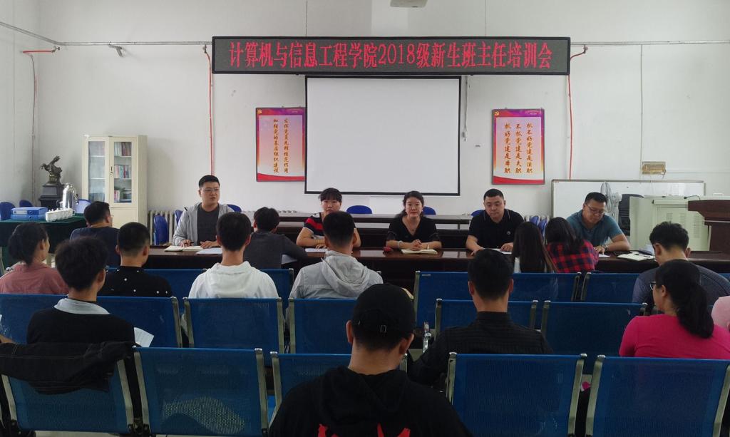 为加强学院新生班主任及副班主任队伍建设,提升班主任的管理水平,保证2018级新生入学后的服务质量,9月3日中午,计算机学院在院办三楼会议室召开了2018级班主任和副班主任培训会。学院党委副书记张丽媛及全体辅导员参加了此次培训会。会议由新生辅导员邹宜兵主持。