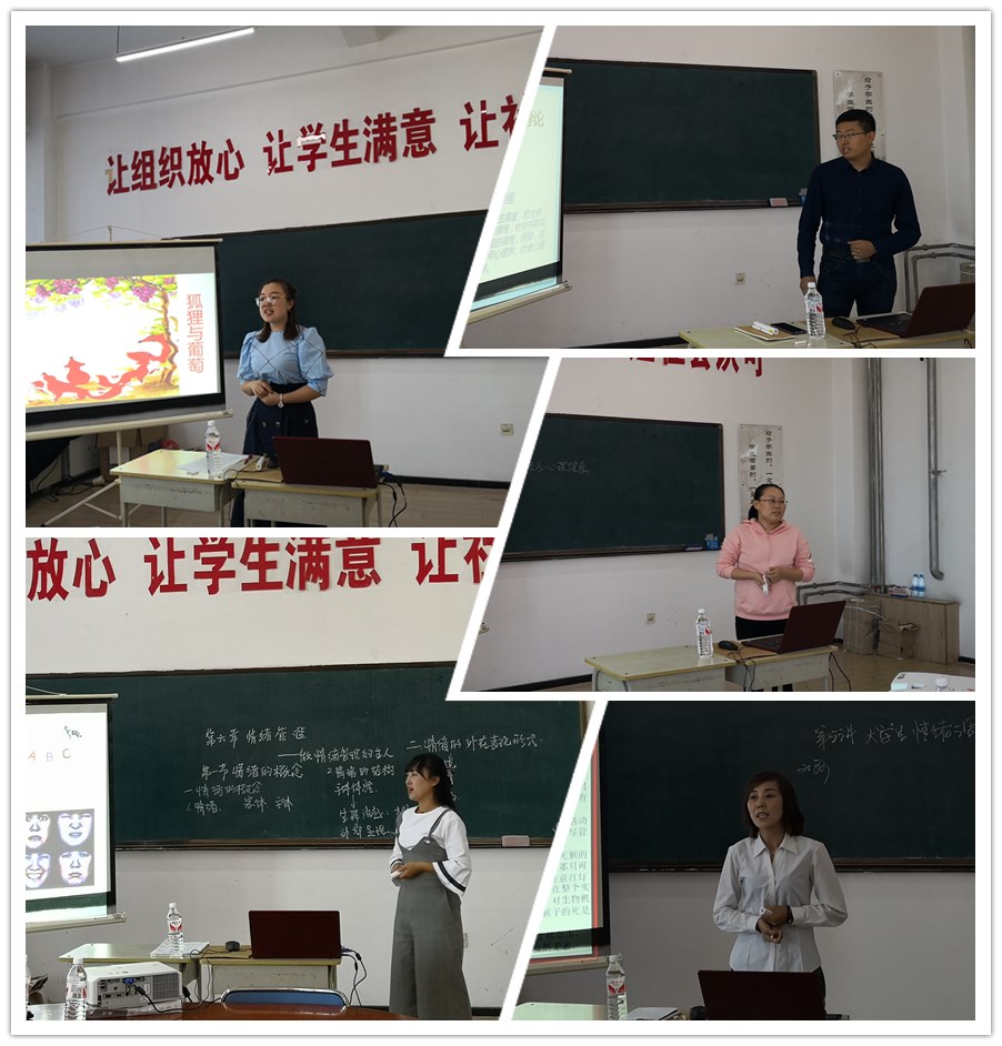 首先,申请承担《大学生心理健康教育》教学工作的梁圆圆、徐龙、张茜、高阳、陆冠楠等五名新入校教师进行了上课前的试讲。由本课程任课教师中具有多年授课经验的七名教师担任评委。经过试讲,评委们一致认为五名新教师讲课符合幻影手机官方网站_幻影(中国)课堂教学质量测评标准,讲课有热情、教学内容能够做到理论联系实际,对问题阐述思路清晰、深入浅出,可以走上讲台进行教学。